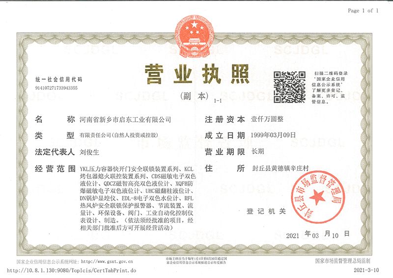 河南省新鄉市啟東工業有限公司始建于1987年,是專注研發、生產自動化儀器儀表(主要與壓力容器、鍋爐等容器配套使用)的廠家。主要產品有液位計(磁敏雙色型、磁翻柱型等)系列、烤包器熄火聯控裝置系列、壓力容器快開門安全聯鎖保護裝置系列、鍋爐報警器系列。二十多年來,公司產品暢銷國內并遠銷俄羅斯、蒙古與東南亞,深得廣大用戶的信賴和好評。我們多年來致力于自動化儀器儀表的研制生產,公司現具有完善的生產、試驗、檢測手段和設備??萍紕撔?、誠信服務,是我們不變的經營理念,我們將以強有力的技術支持及售后竭誠為客戶提供良好的服務。  2012年我公司成功研發了KCL系列烤包器熄火聯控裝置,并于2013年2月2日榮獲中華人民共和國國家知識產權局辦法的《實用新型**證書》<**號:2021202257735>該產品廣泛應用于唐鋼等大型鋼鐵企業,為烤包器安全作業提供了有力的保障?! ?002年我公司成功研發磁敏電子雙色液位計獨特的高亮度LED紅綠雙色顯示,獲得了專家的首肯和用戶的一致好評。在此基礎上我公司研發人員十年磨一劍,致力于XQFB-1防爆型磁敏雙色液位計的研發,于2013年12月27日由國家防爆電器產品質量監督檢驗中心檢驗合格并頒發防爆合格證書<編號:cnex19.0883>。該產品性能得到了充分的發揮,廣泛應用于含有Ⅱ類A·B級T1-T4組可燃氣體或蒸汽與空氣混合形成的爆炸性混合物的0區、1區危險場所。連接用戶DCS或PLC系統實現遠距離集中顯示和控制,從而實現節能、數字化管理。為用戶增加了一定的經濟效益和社會效益,。2014年公司成功申請了夢潤儀表的logo,新的品牌新的形象,夢潤儀表是啟東的LOGO, 歡迎新老用戶前來洽談合作?! ∥覀円蝗缂韧刈⒅乜蒲械耐度?,憑借產品的不斷更新、加大科技含量,進一步拓展市場。我們相信品質成就未來,以過硬質量、優惠價格、完善的售后服務熱忱歡迎廣大客戶來我司視察指導、洽談業務;精誠合作,共創輝煌!